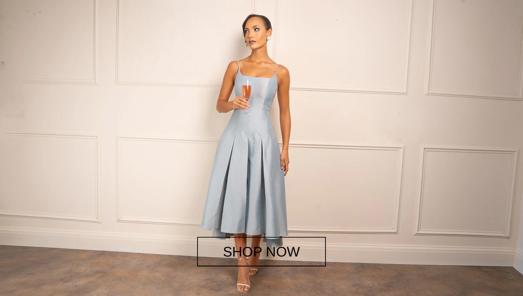 Lily Blue Spaghetti Hand Pleated Midi Dress