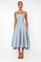 Lily Blue Spaghetti Hand Pleated Midi Dress