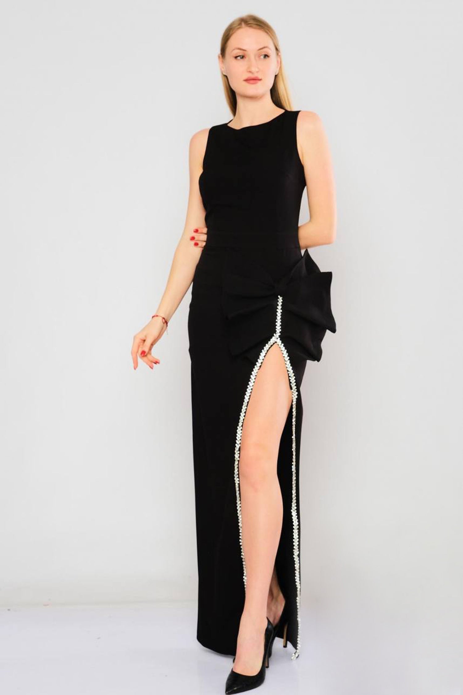 Sparkly Black Long Dress with Slit