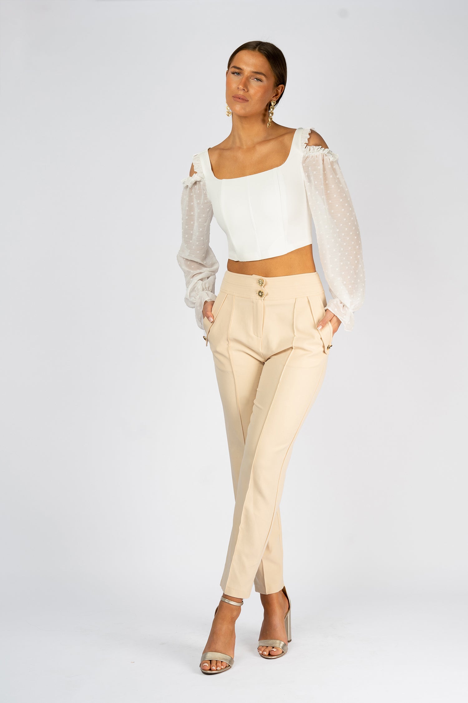 High Waist Beige Tailored Pants